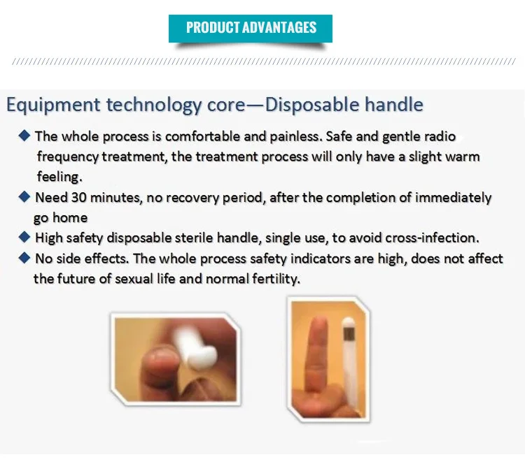 6. High safety disposable sterile handle, single use, to avoid cross-infection. No side effects. The whole process safety indicators are high, does not affect the future of sexual life and normal fertility.