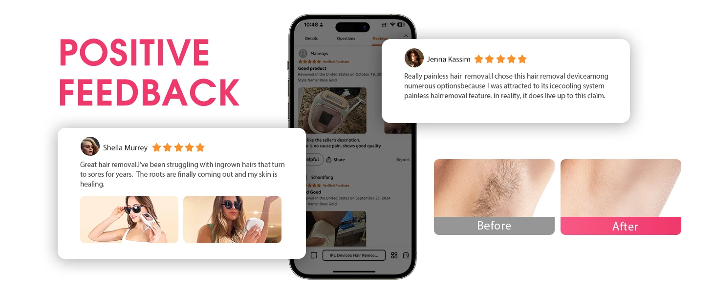 【Painless, Gentle Hair Removal】 - IPL laser hair removal is the effect of using IPL to damage the hair follicle to achieve permanent hair removal. The most effective IPL (Intense Pulsed Light) device for permanent hair removal in just 8 weeks.
