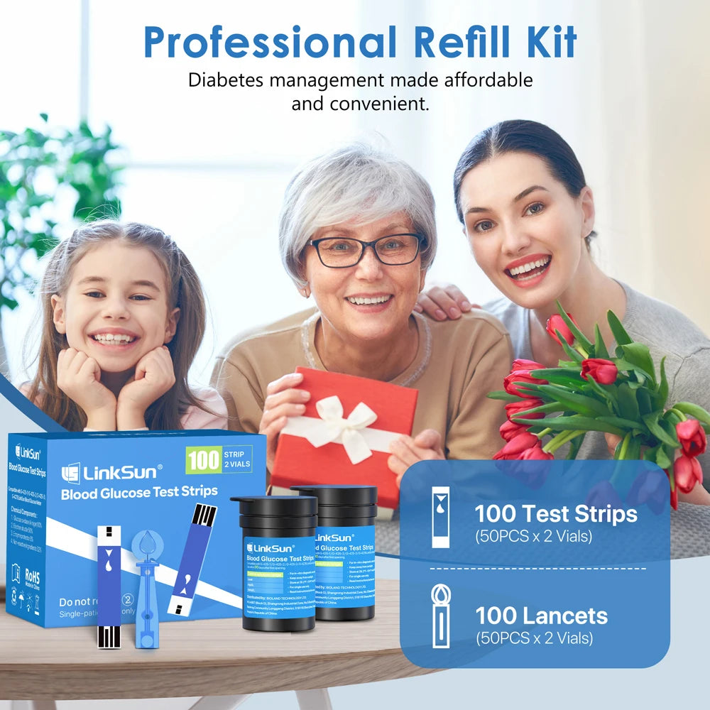 Linksun Glucose Meter Kit With Blood Sugar Test Strips