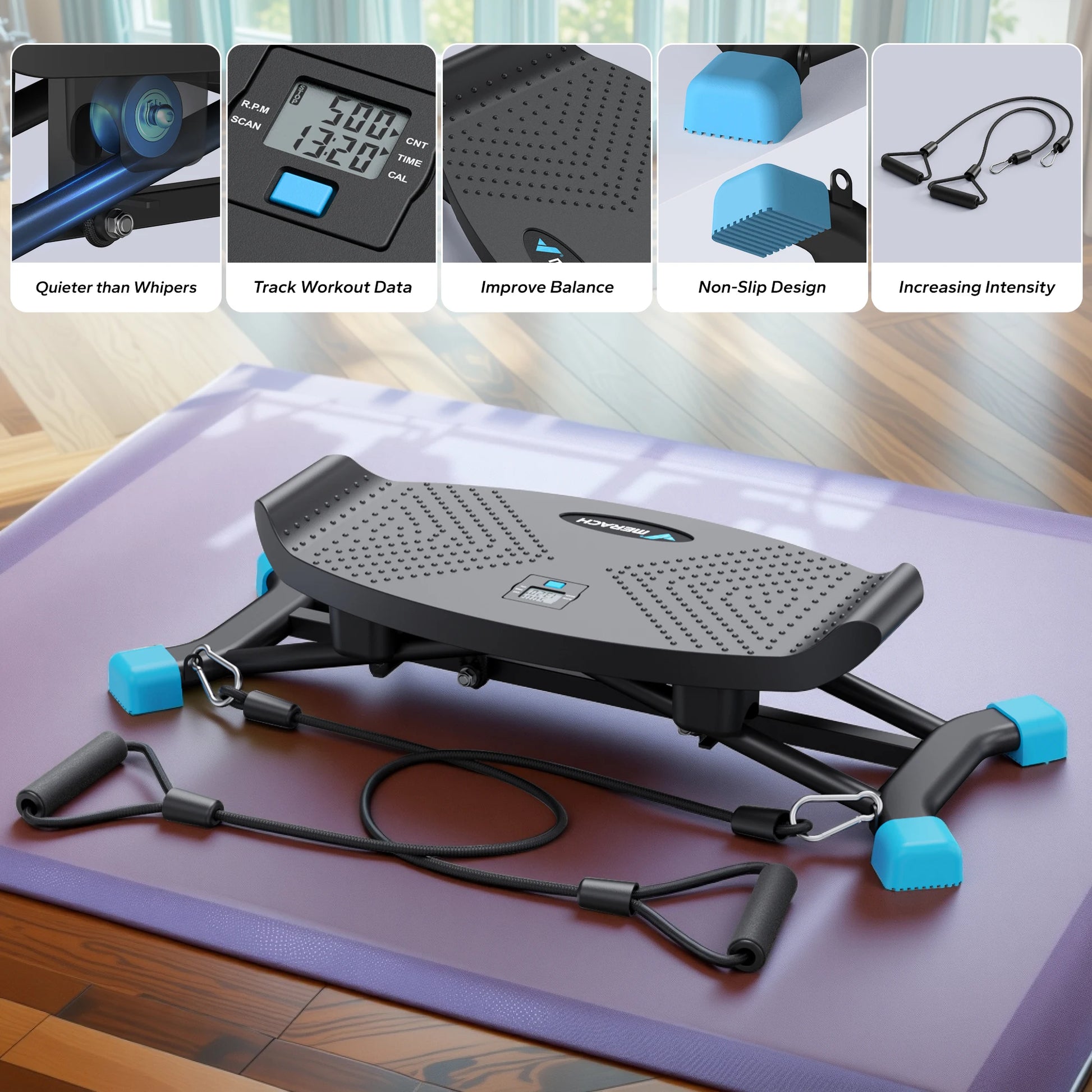 - Pair with resistance bands for a complete full-body workout, plus plank-style movements for targeted core and upper-body strength.