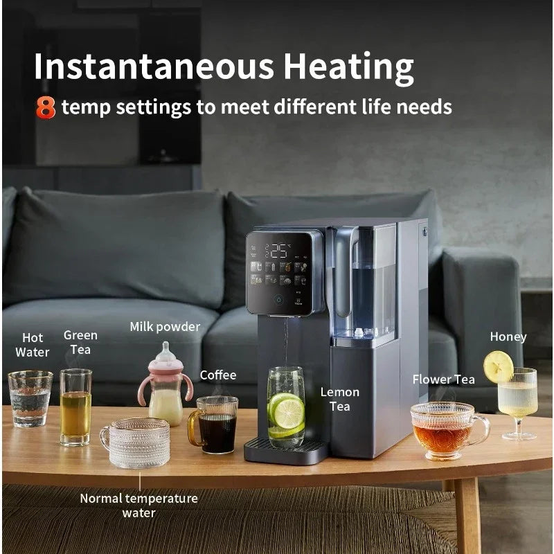 - Smart control panel shows real-time water quality, reminders, four cup sizes (4 oz, 8 oz, 12 oz, 17 oz), and eight temperature options (up to 24 months filter life).