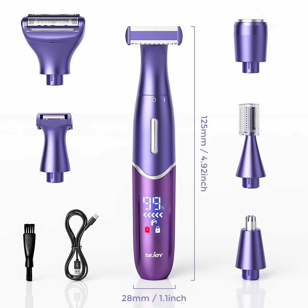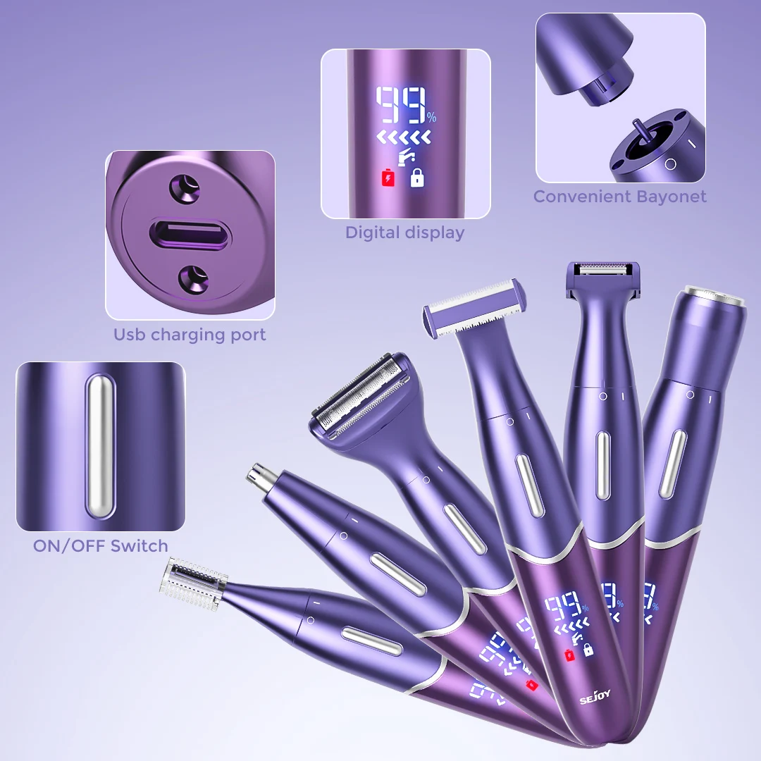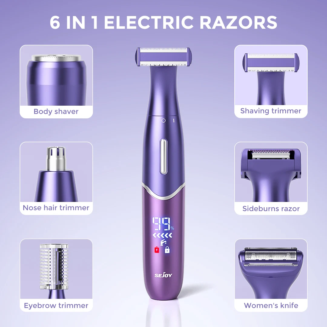 Sejoy 6-in-1 Electric Razor for Women's Pubic Hair,Painless Body Shaver,Facial Epilator,Hair Removal for Face,Bikini Trimmer